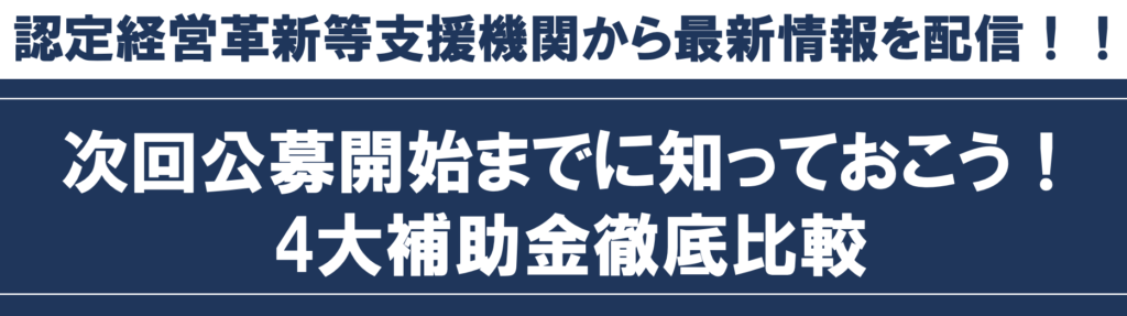 次回公募開始までに知っておこう!4大補助金徹底比較